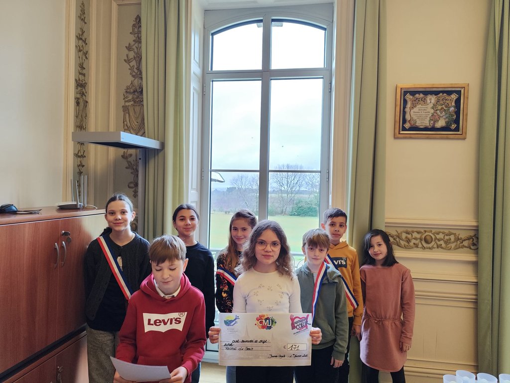 Dimanche 1er février, les jeunes membres du Conseil Municipal des Jeunes ont remis aux représentants des “Resto du Cœur “ un chèque de 171 Euros représentant le bénéfice intégral de la vente de pâtisseries, opérée lors du marché de fin d'année.
