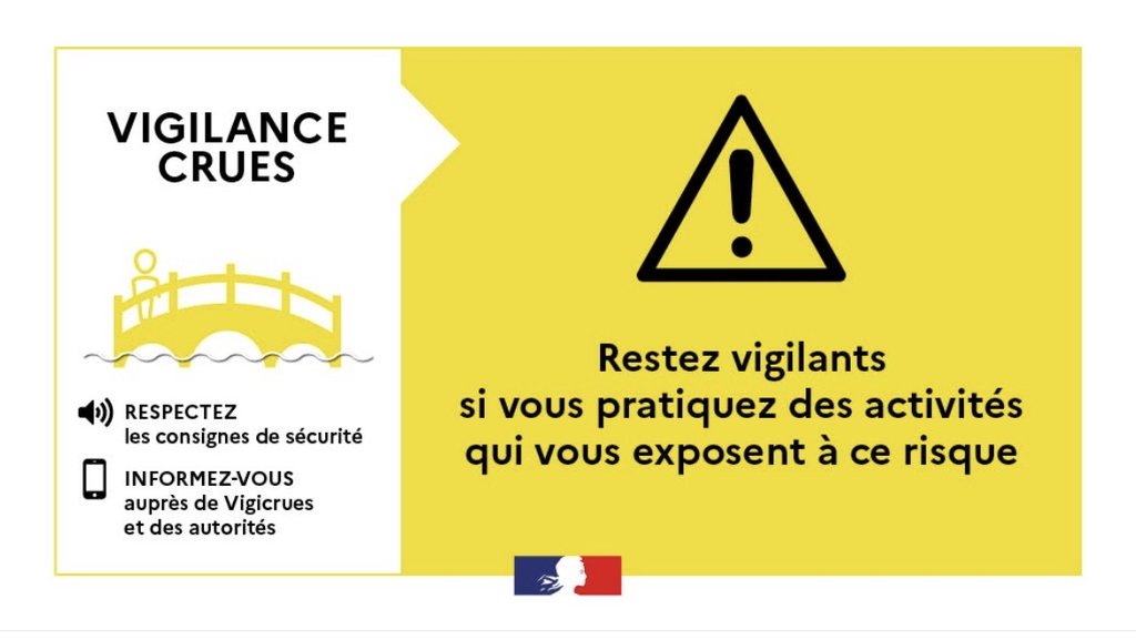 ⚠️ Vigilance recommandée à proximité des cours d’eau et zones inondables. Prenez vos précautions.