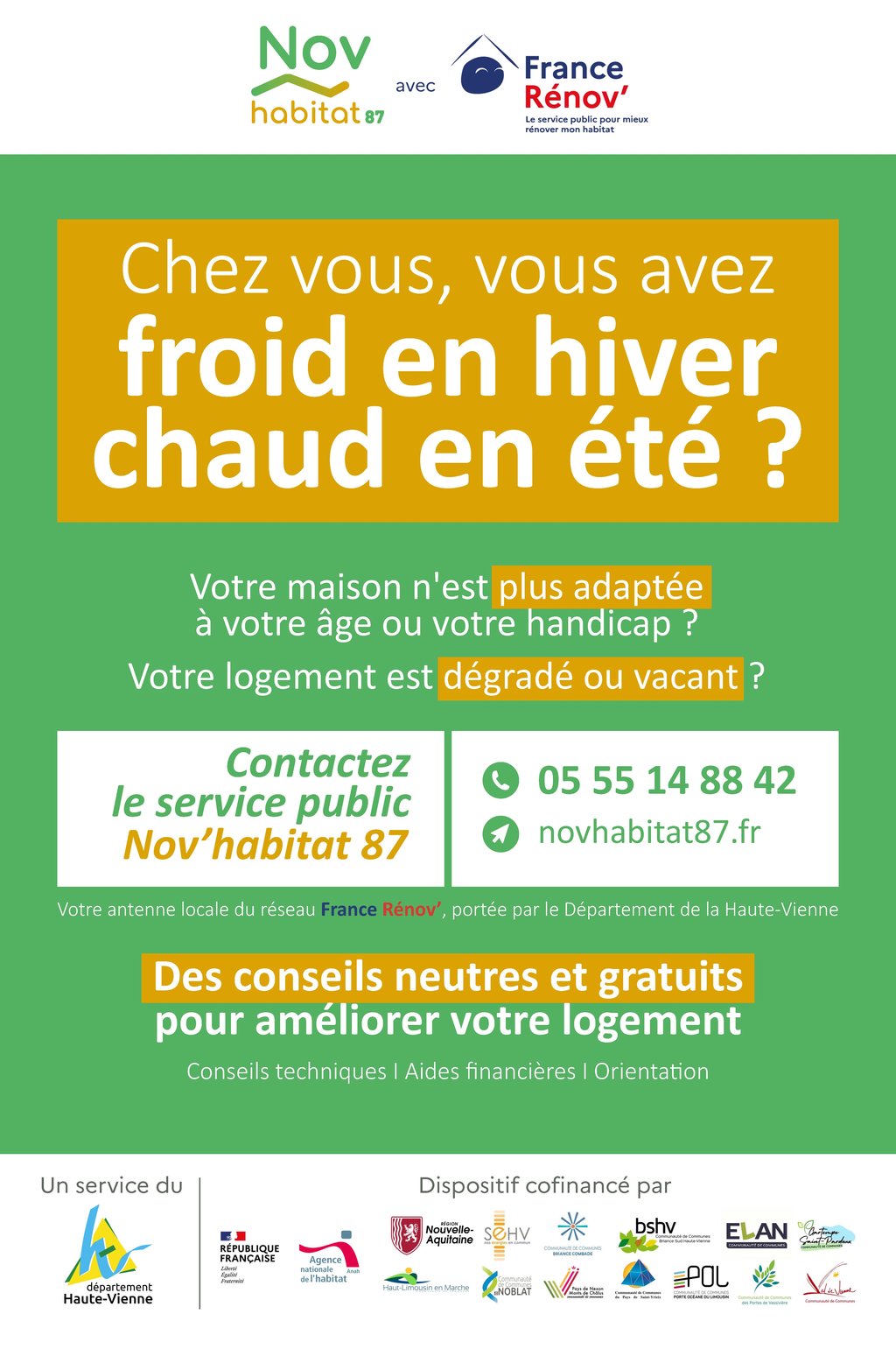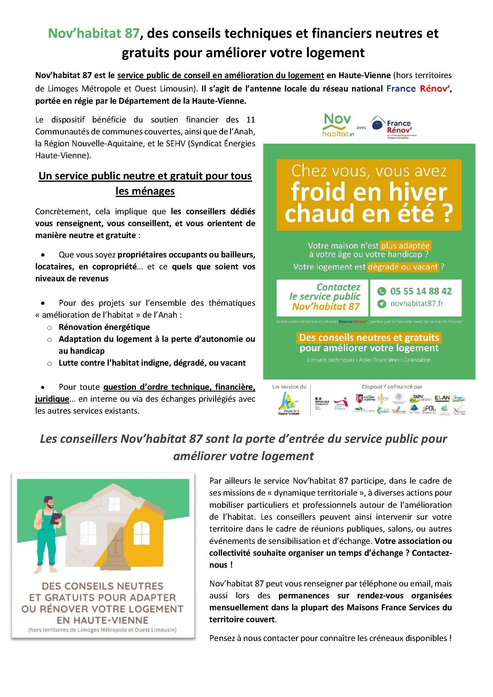 Nov’habitat 87 est le service public de conseil en amélioration du logement en Haute-Vienne