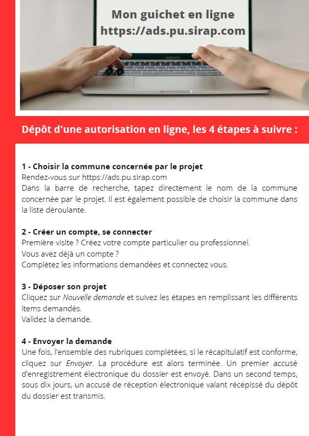 Le portail usager pour le dépôt de vos demandes dématérialisées d'autorisation d'urbanisme a changé :ads.pu.sirap.com