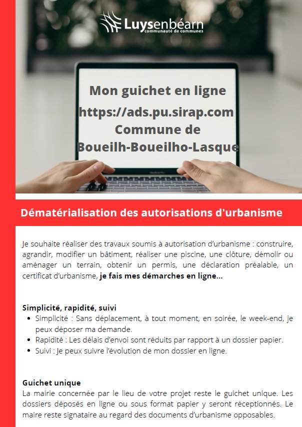 NOUVEAU LIEN POUR LE DÉPÔT DÉMATÉRIALISÉ DES AUTORISATIONS D'URBANISME