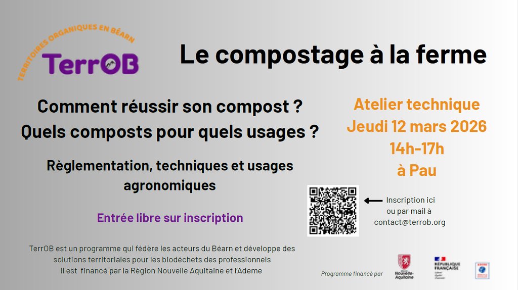 Cet atelier technique intitulé Le compostage à la ferme s'adresse principalement aux agriculteurs et se déroulera pour partie en salle et pour partie sur le terrain le 12 mars prochain à Pau.
