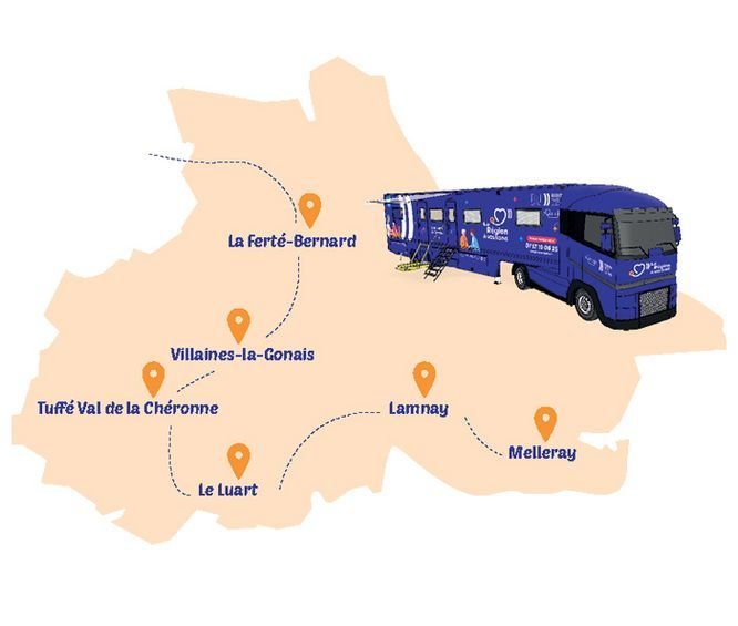 Pour faciliter l'accès aux soins des patients sans médecin traitant, un centre de santé mobile se déplace chaque semaine dans une des communes du territoire du Perche Emeraude, du lundi au mercredi :