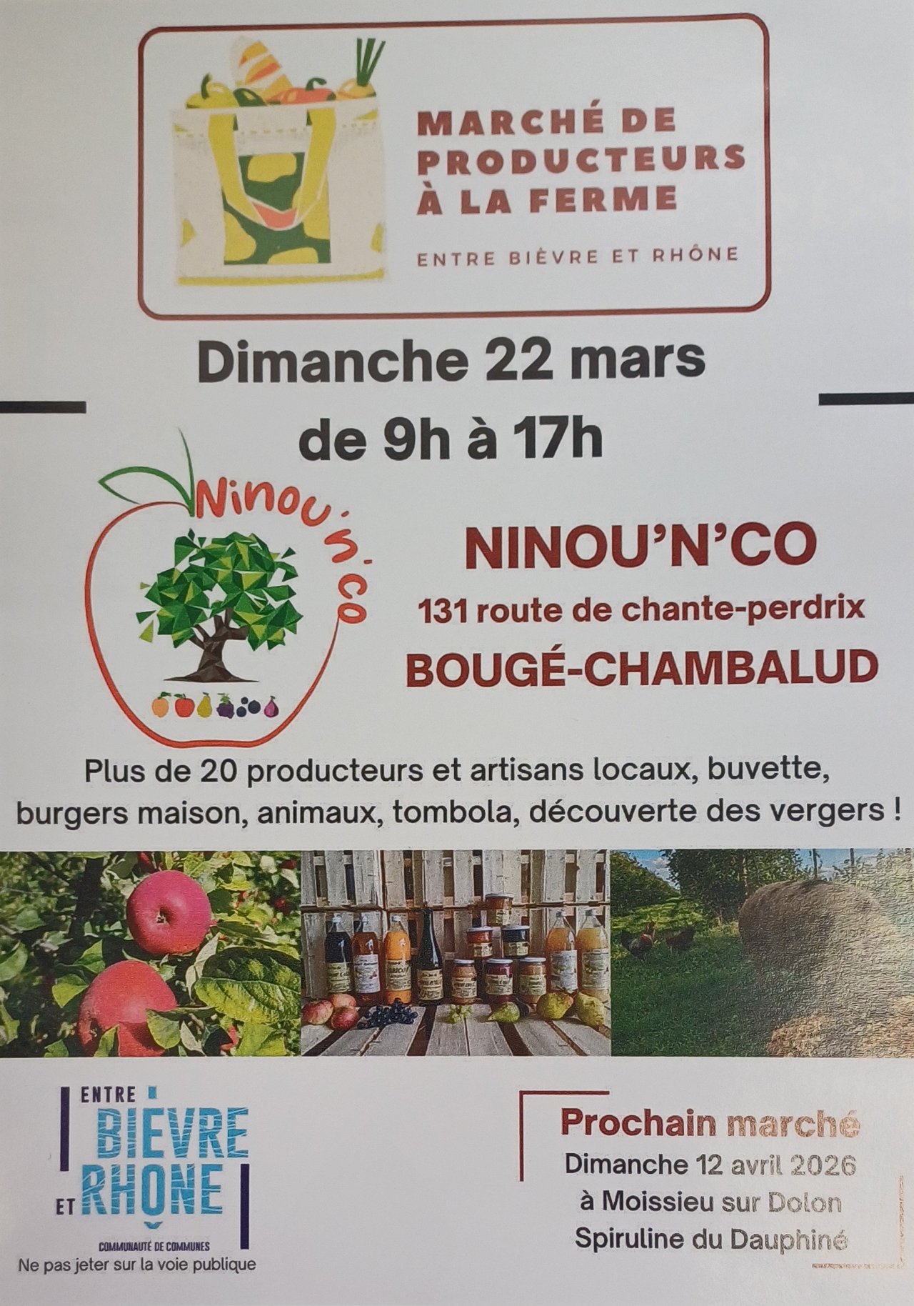 Plus de 20 producteurs et artisans locaux, buvette, burgers maison, animaux, tombola, découverte des vergers...