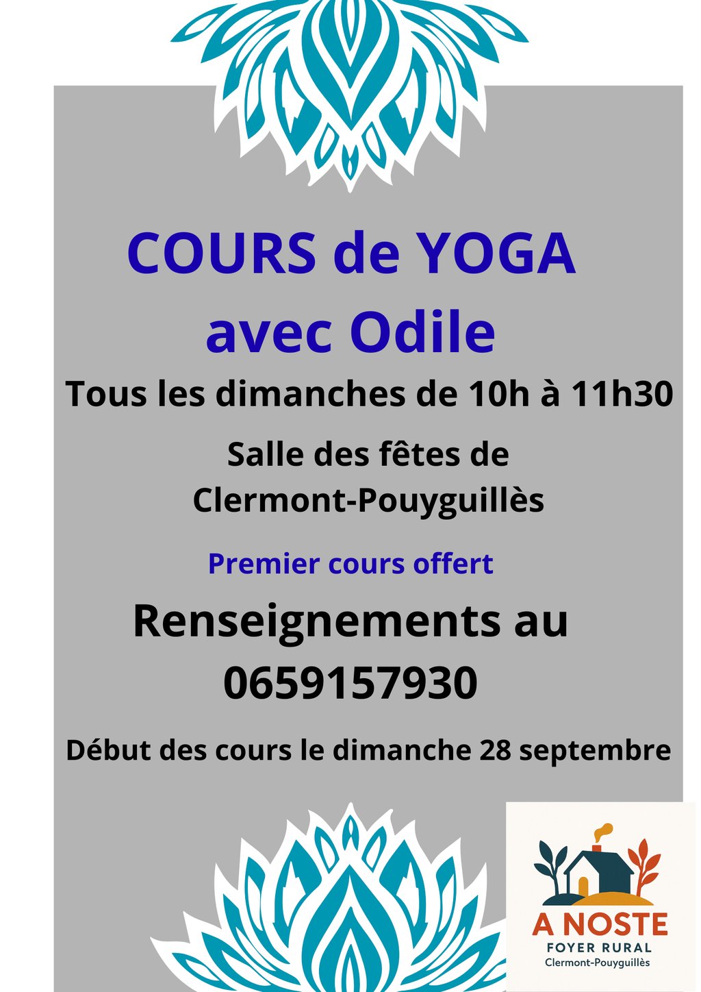 Tous les dimanches matin sont proposés des cours de yoga à la salle des fêtes de Clermont-Pouyguillès🎉.