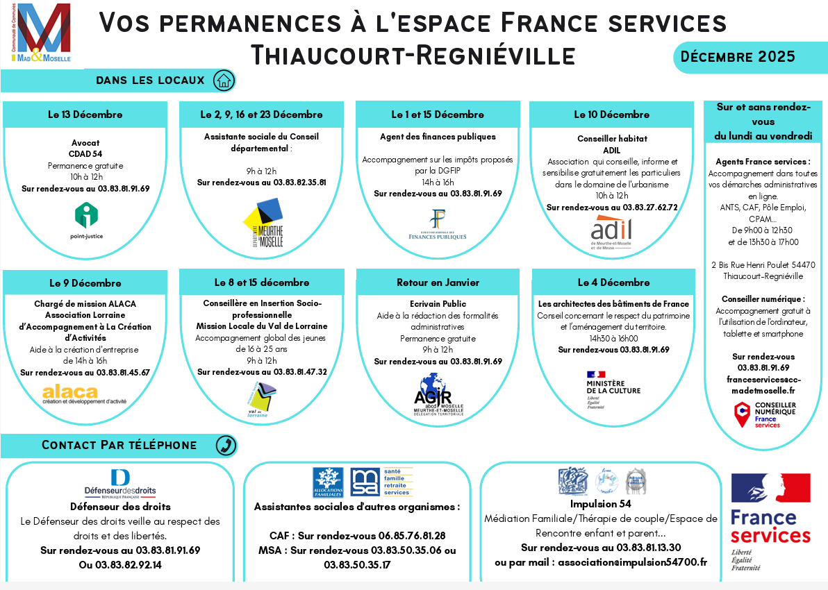 En cliquant sur le lien suivant, retrouvez tous VOS RENDEZ-VOUS FRANCE SERVICES de décembre à Thiaucourt-Regniéville