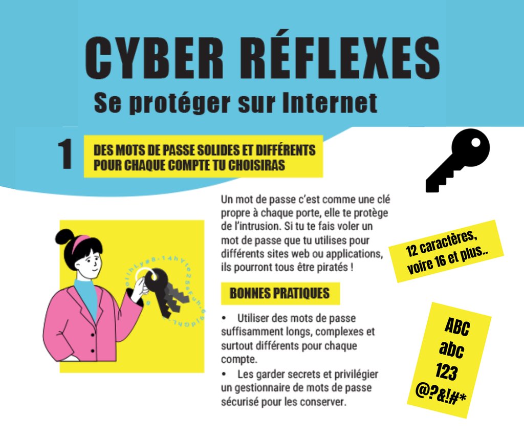 1️⃣ 🔑 Mots de passe : Longs, complexes et différents pour chaque compte.