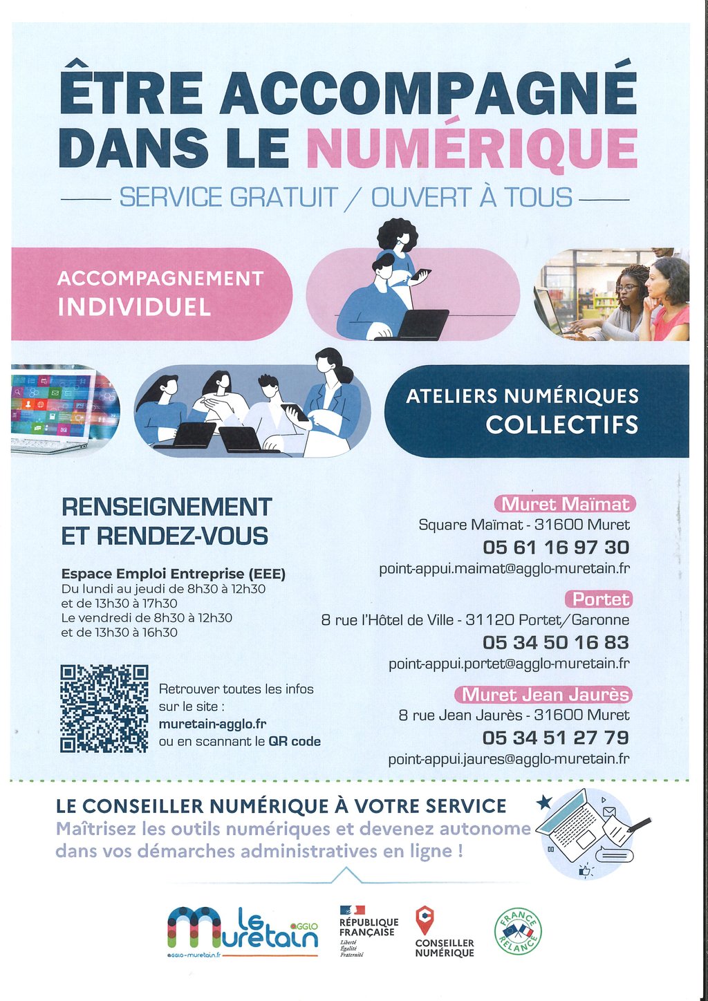 Trois sites sur Muret et Portet sur Garonne proposent un accompagnement individuel ou ateliers collectifs ouvert à tous, dans le numérique.