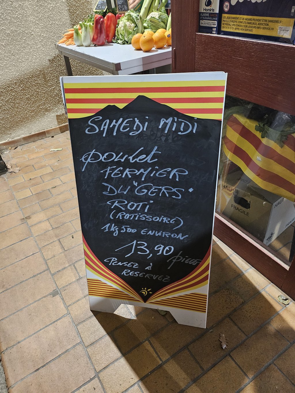 Samedi midi votre épicerie vous propose le poulet rôti à 13€90 pièce.