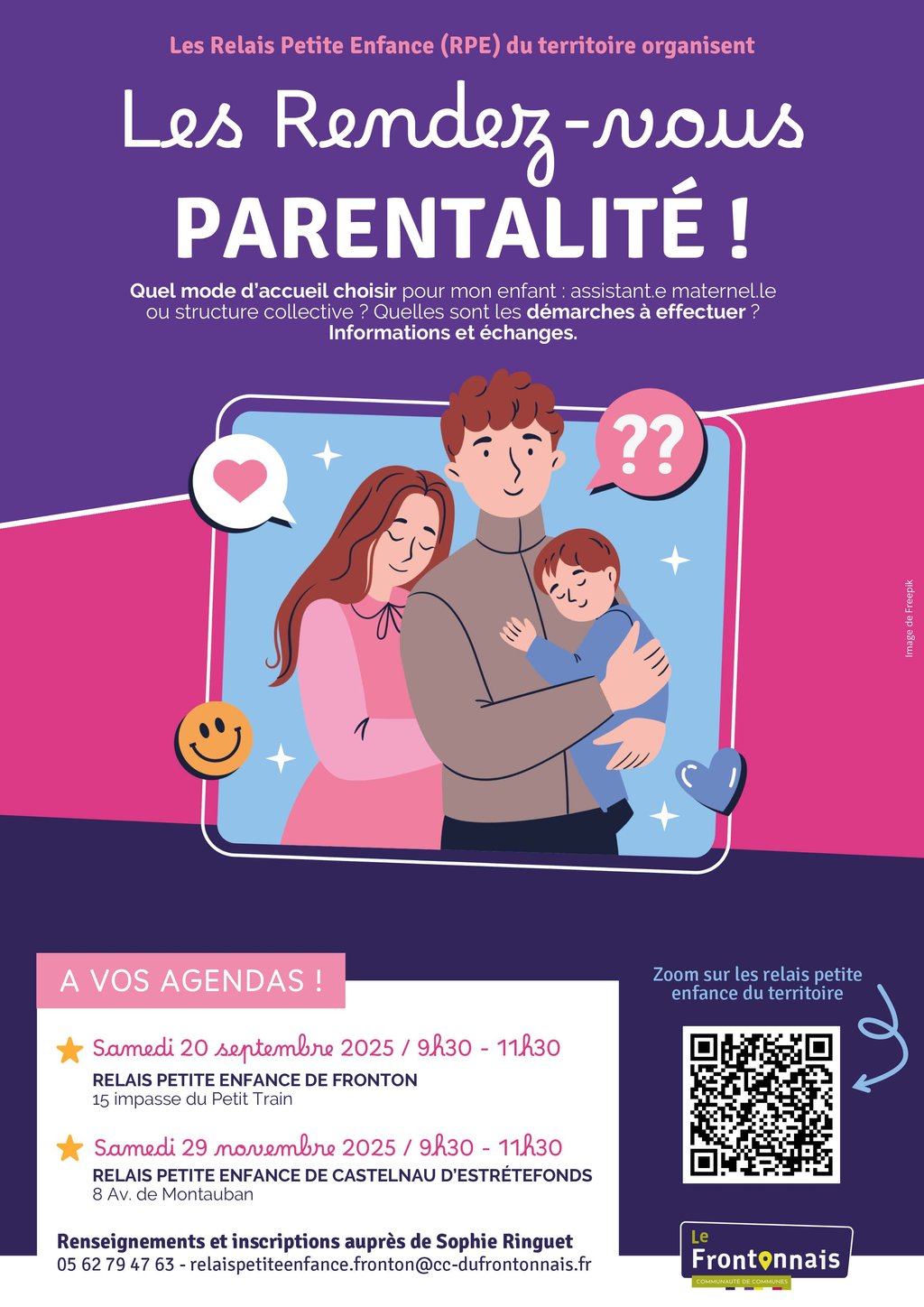 Venez échanger et obtenir toutes les informations lors des Rendez-vous Parentalité organisés par les Relais Petite Enfance (RPE) du territoire. 👨‍👩‍👧‍👦💖