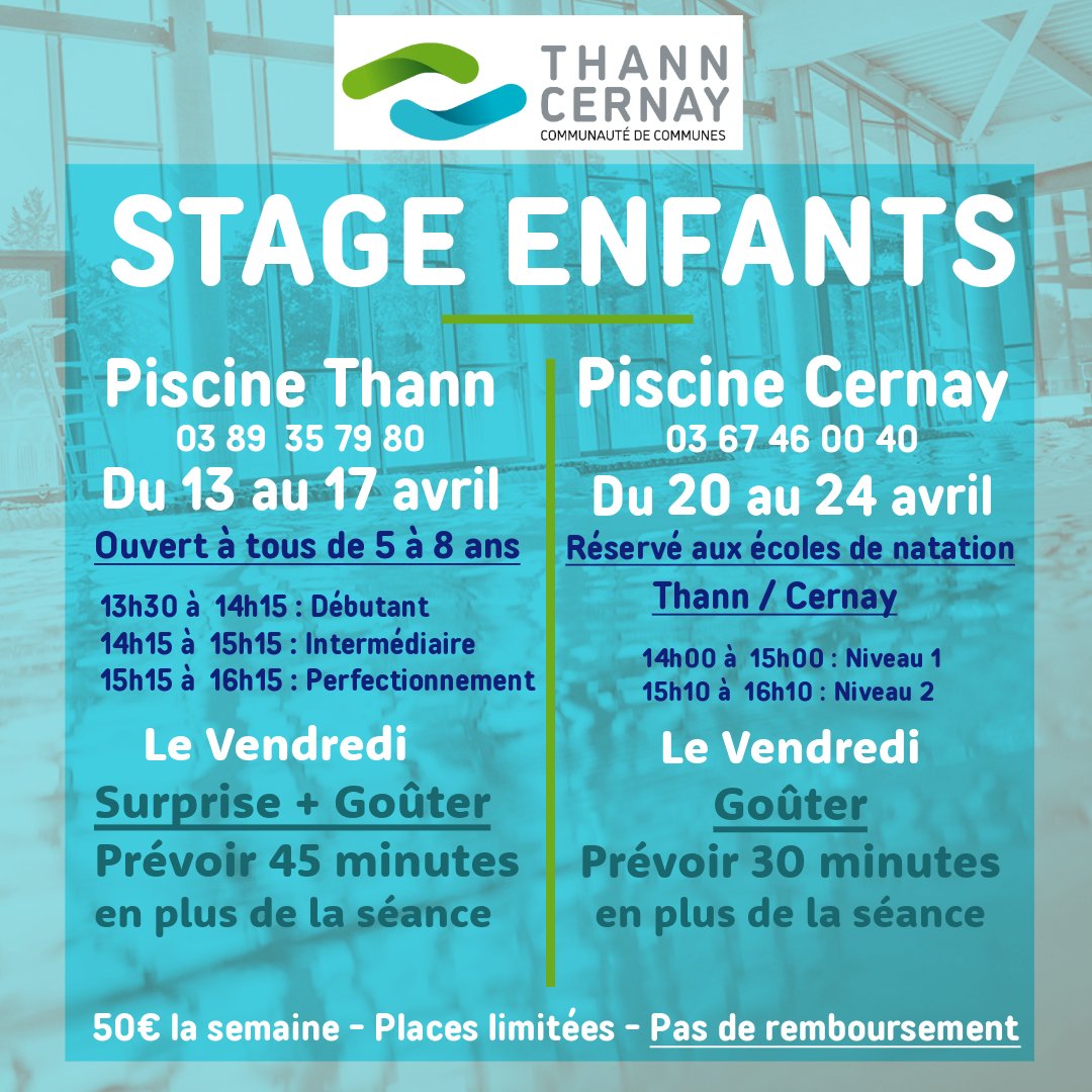 Piscine de Cernay : Stage réservé aux enfants déjà inscrits dans les écoles de natation de Thann & Cernay : Du 20 au 24 avril