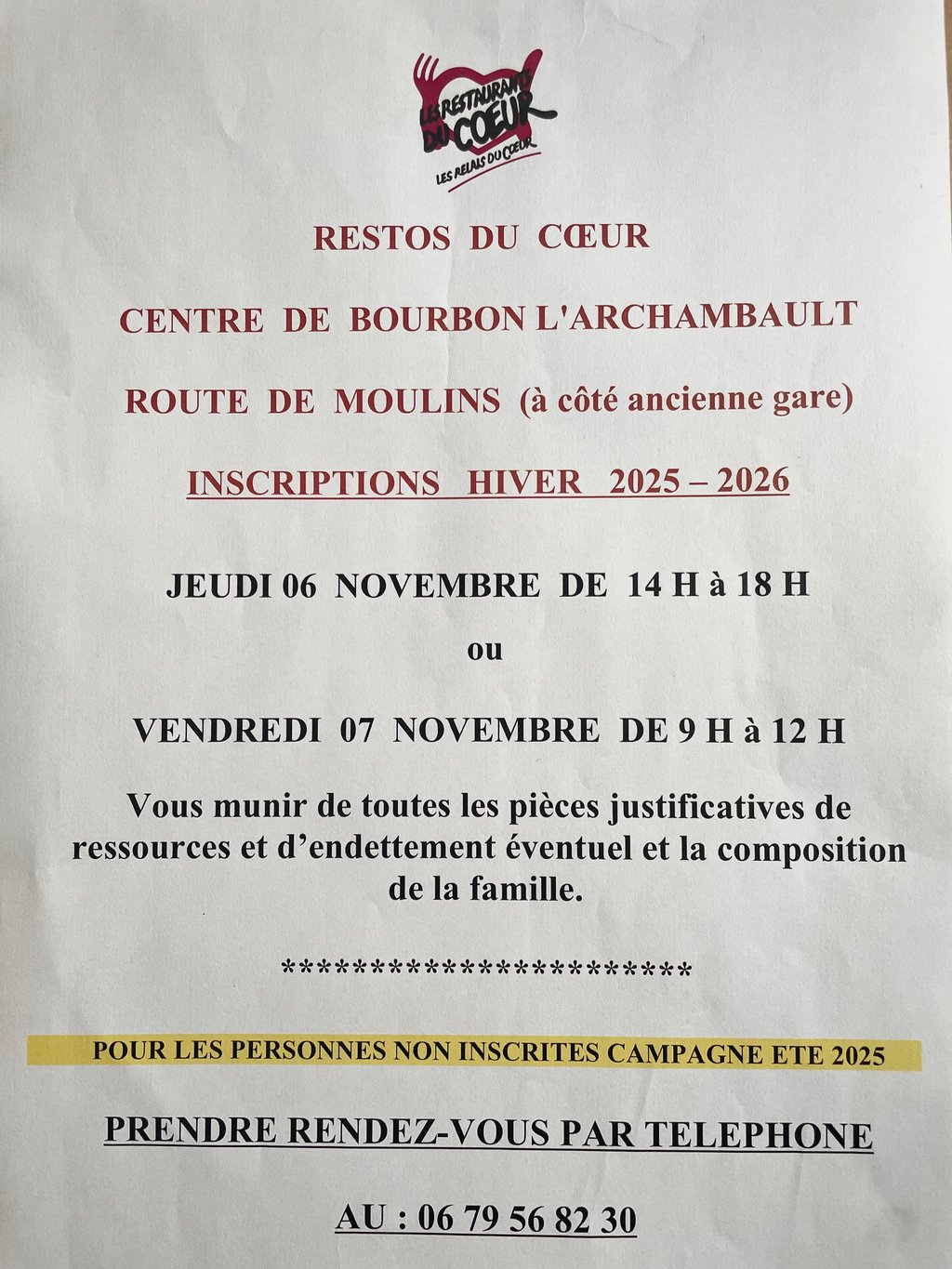 INSCRIPTIONS RESTO DU COEUR 2025-26