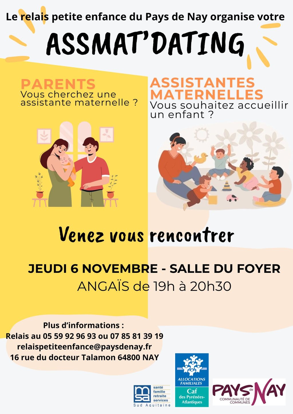 Le Relais Petite Enfance du Pays de Nay vous invite Ă venir rencontrer plusieurs assistantes maternelles lors dâun moment dâĂ©change convivial :