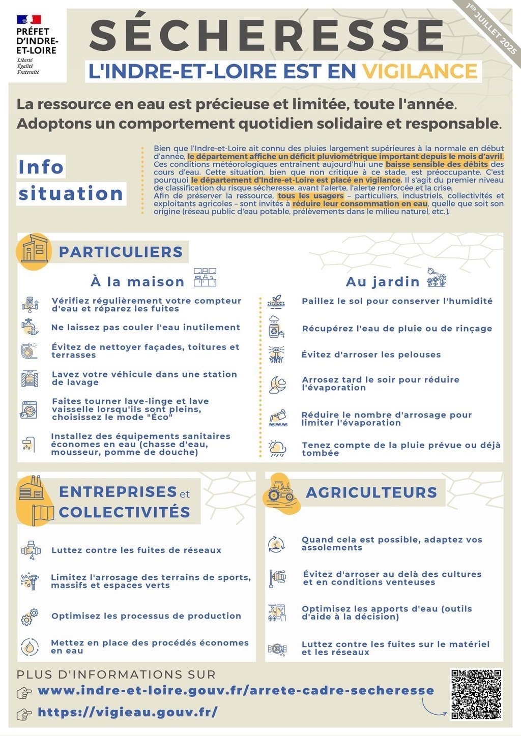 LIMITATION ET SUSPENSION TEMPORAIRE DES USAGES DE L'EAU EN INDRE-ET-LOIRE [ARRÊTÉ PRÉFECTORAL DU 12 SEPTEMBRE 2025]