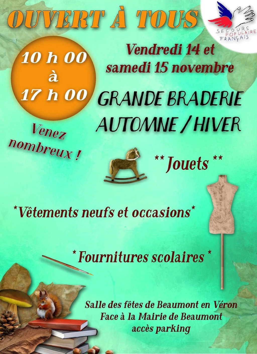 Grande braderie automne / hiver du Secours Populaire à la salle des fêtes de Beaumont en Véron