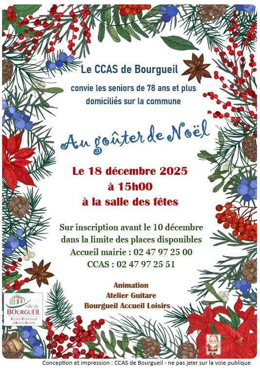 Le CCAS de Bourgueil convie les seniors de 78 ans et plus, domiciliés sur la commune à un GOUTER DE NOËL