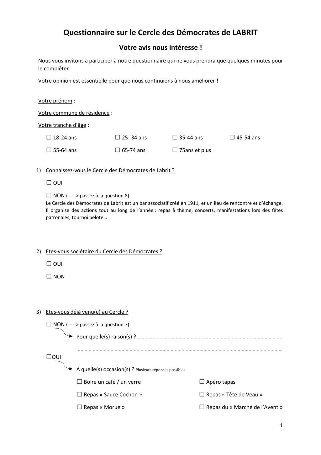 Questionnaire sur le Cercle des Démocrates de Labrit
