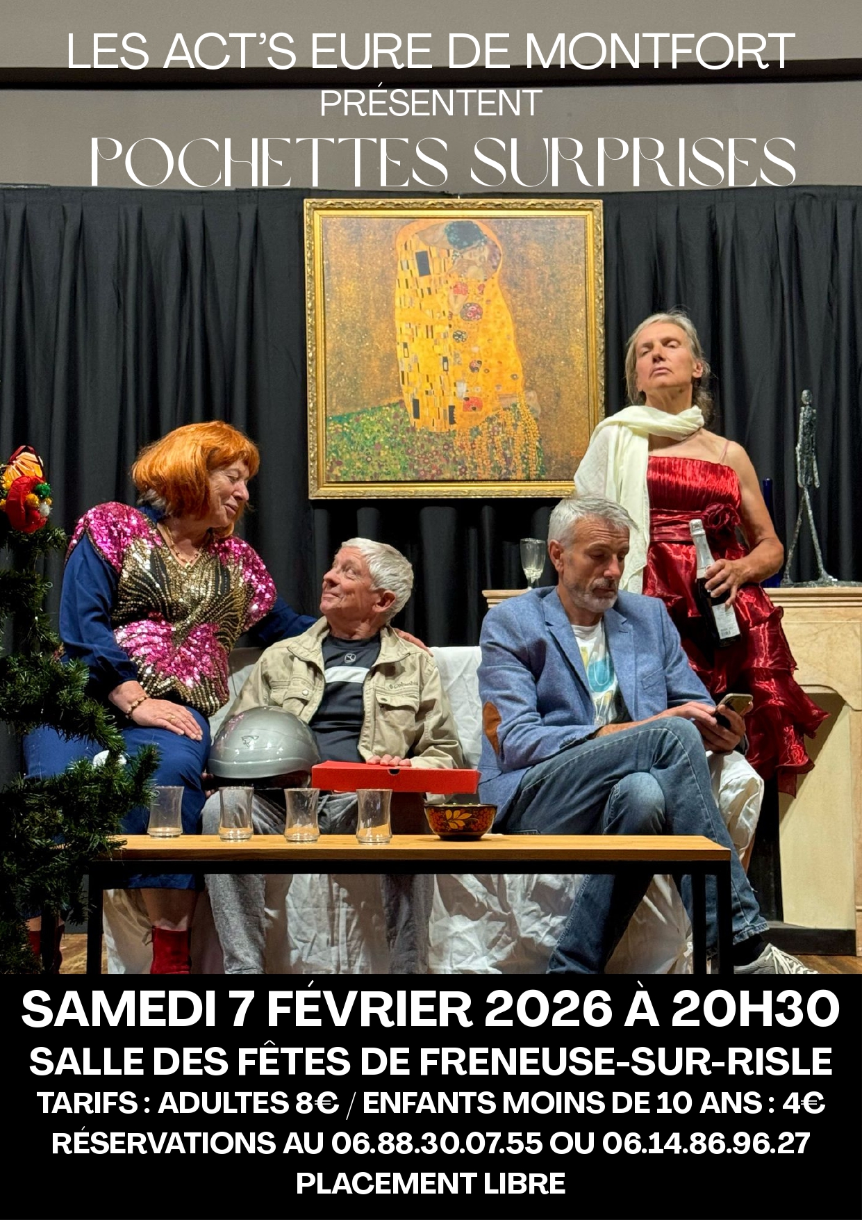 La troupe des Act’s Eure de Montfort sera sur la scène de la salle des fêtes de Freneuse sur Risle, le samedi 07 02 2026 à 20h30 pour jouer leur nouvelle pièce, « pochettes surprises » de Jacky Goupil