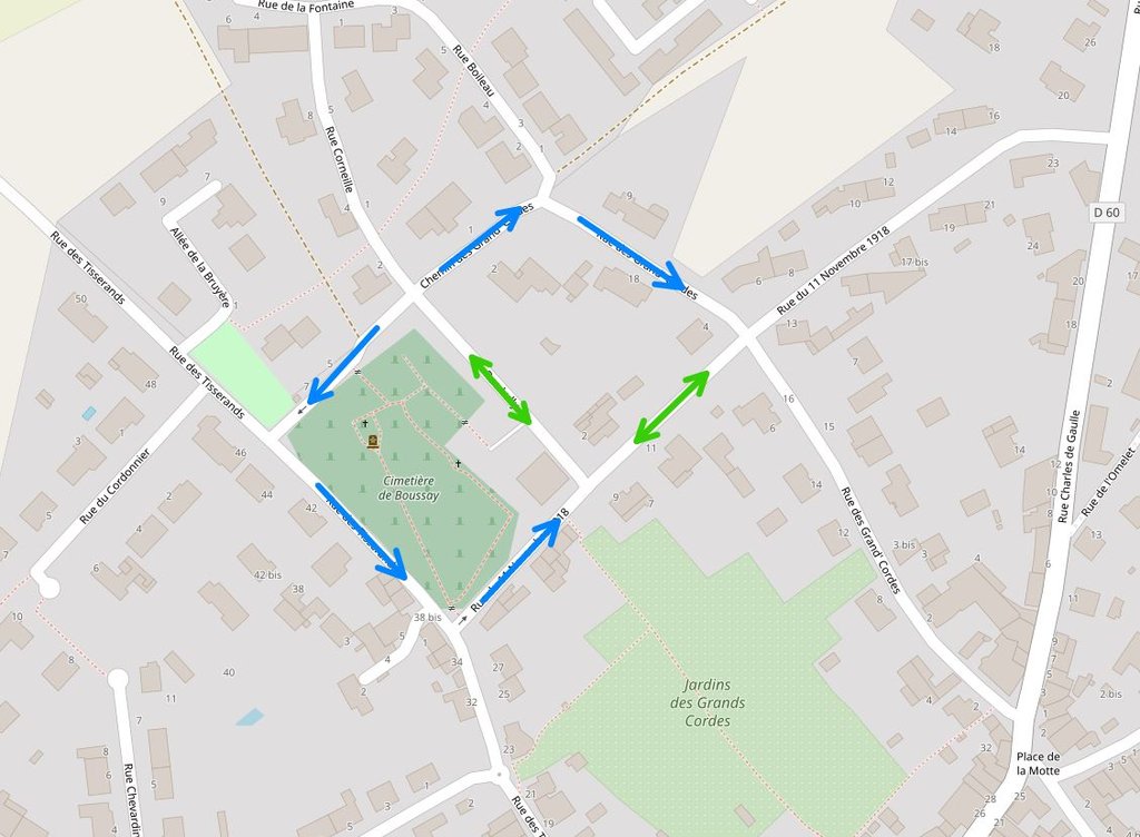 Autour du cimetière, le sens de circulation définitif entre en vigueur dès à présent selon le plan ci-dessous.