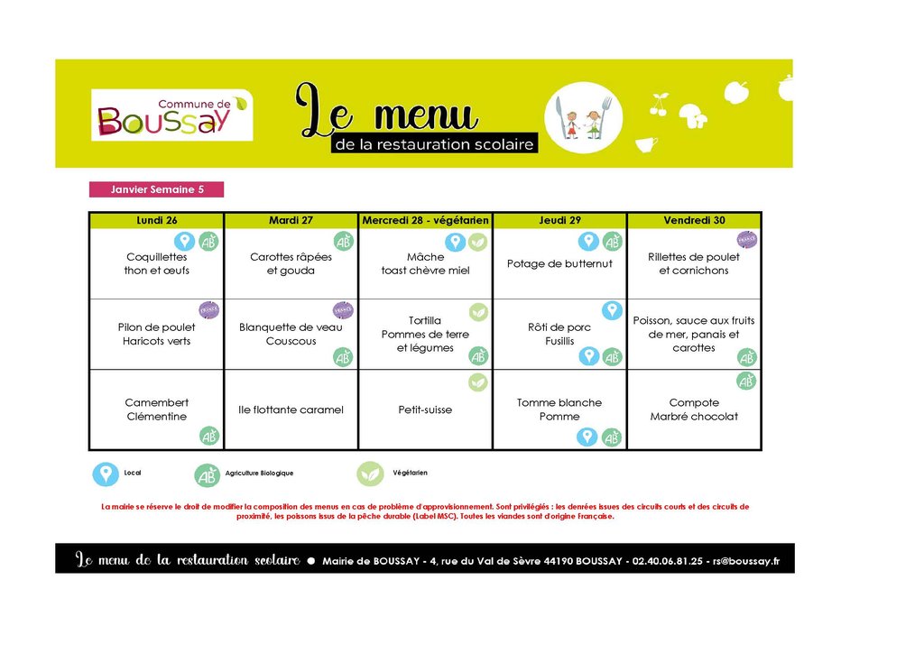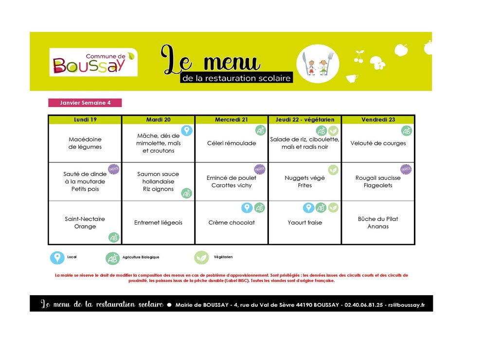Les menus de la restauration scolaire du lundi 19 au vendredi 30 janvier sont en ligne :
