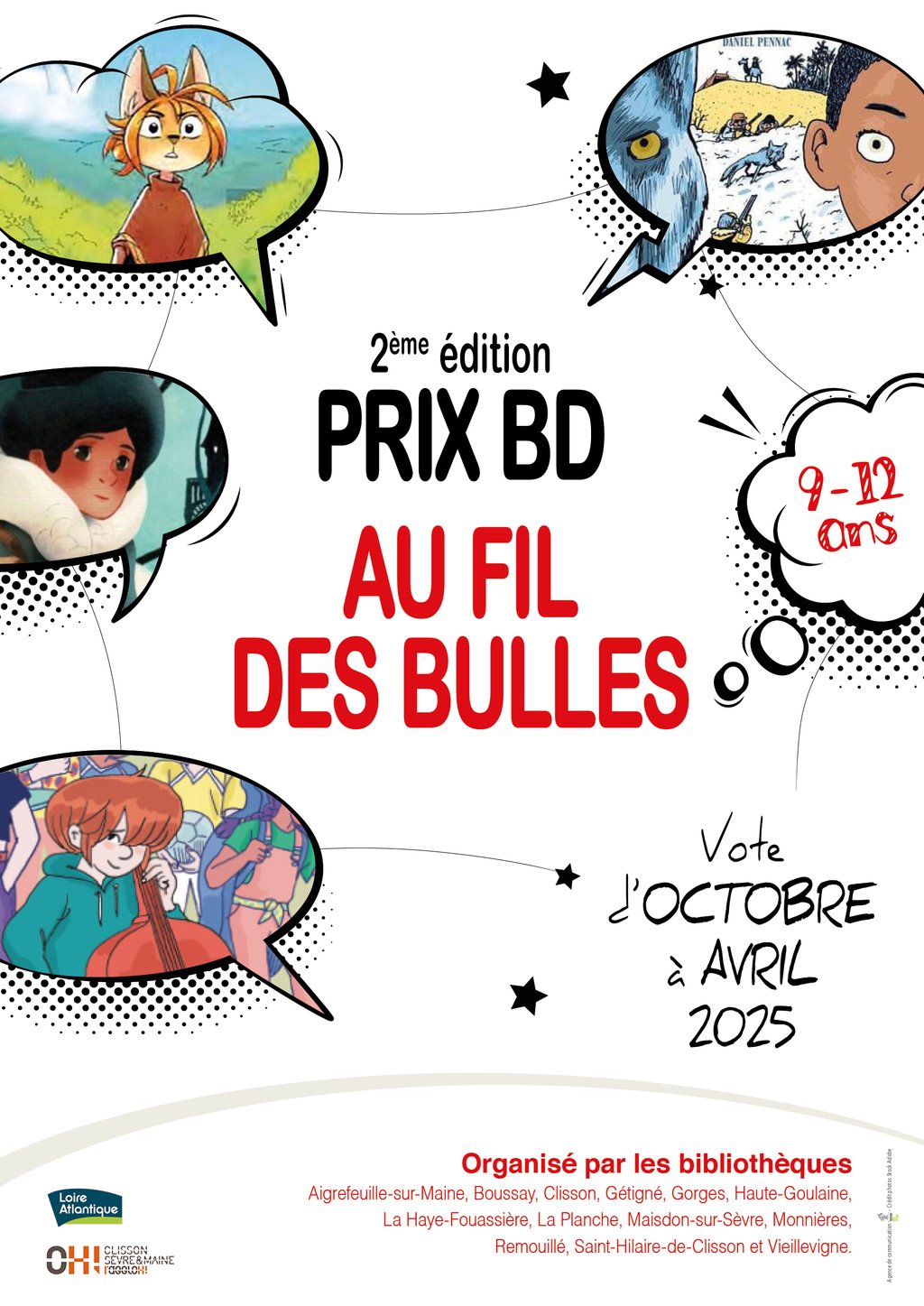 Porté par 13 bibliothèques du territoire Clisson Sèvre et Maine Agglo, dont la bibliothèque de Boussay, en partenariat avec la Bibliothèque départementale de Loire-Atlantique, ce prix célèbre les bandes dessinées aux jeunes de 9 à 12 ans.