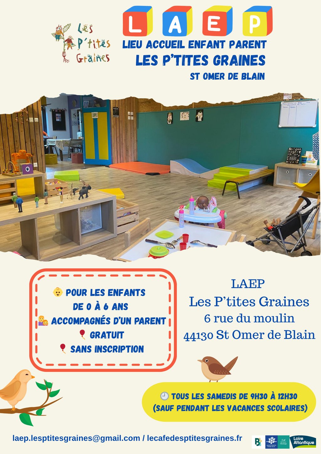 Le Lieu d’Accueil Enfant-Parent (LAEP) Les P’tites Graines, situé à Saint-Omer-de-Blain, accueille les enfants de 0 à 6 ans, accompagnés d’un parent, dans un espace chaleureux, aménagé pour jouer, explorer, échanger et partager un moment convivial.