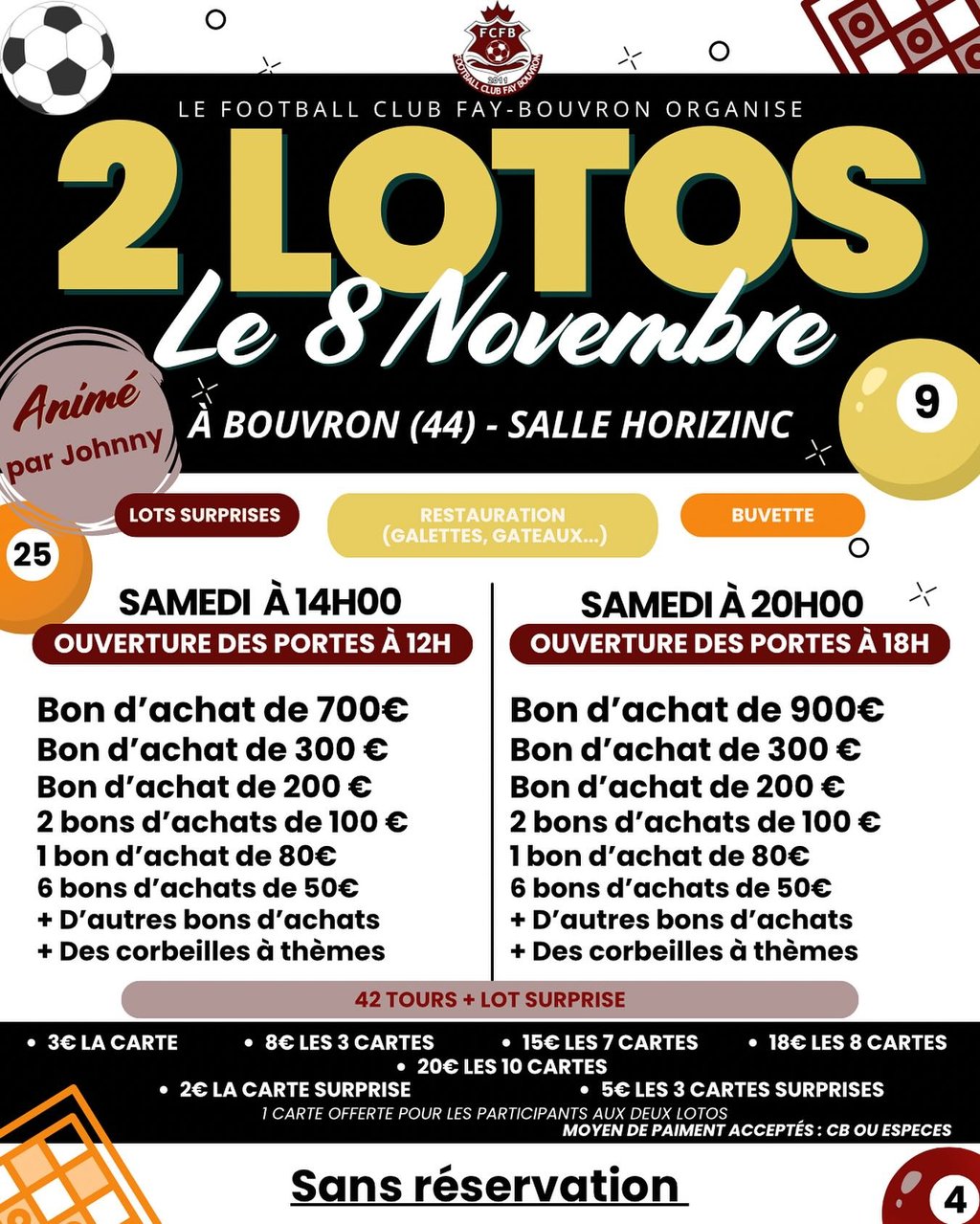 đRendez-vous le samedi 8 novembre Ă 14h00 et 20h00 Ă la salle Horizinc Ă Bouvron.
