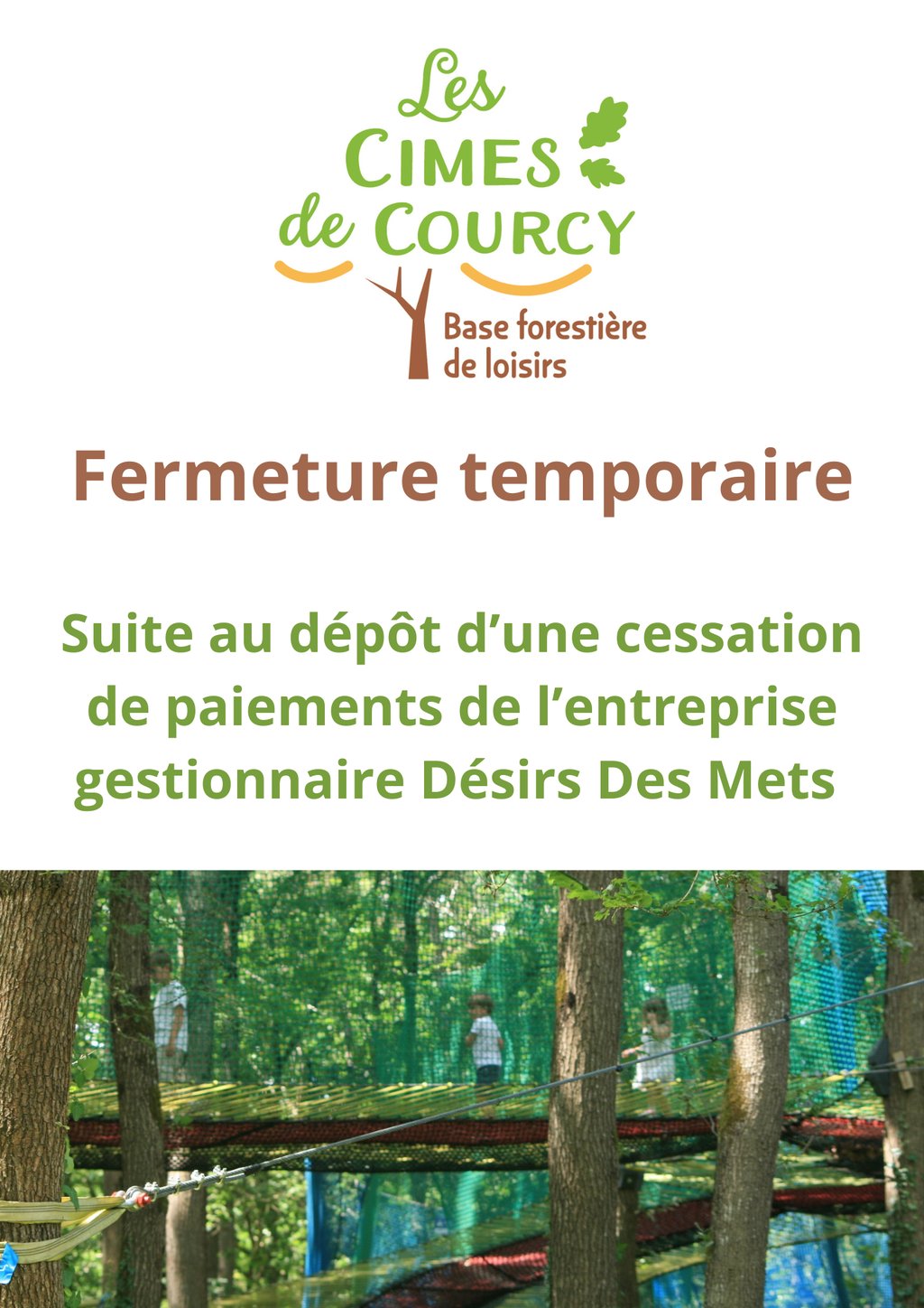 LES CIMES DE COURCY - Fermeture temporaire suite au dépôt de cessation de paiements de l'entreprise gestionnaire Désirs Des Mets.