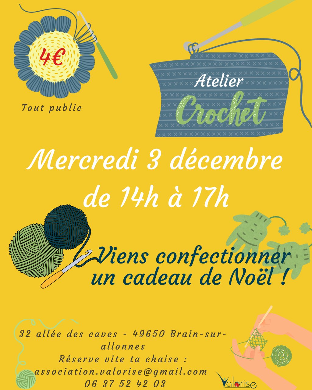 Atelier Crochet de 14h à 17h - 4 euros