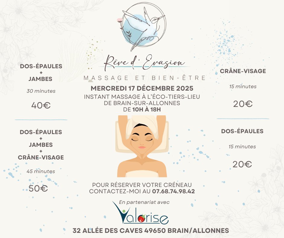 Massage et bien-être de 10h à 18h