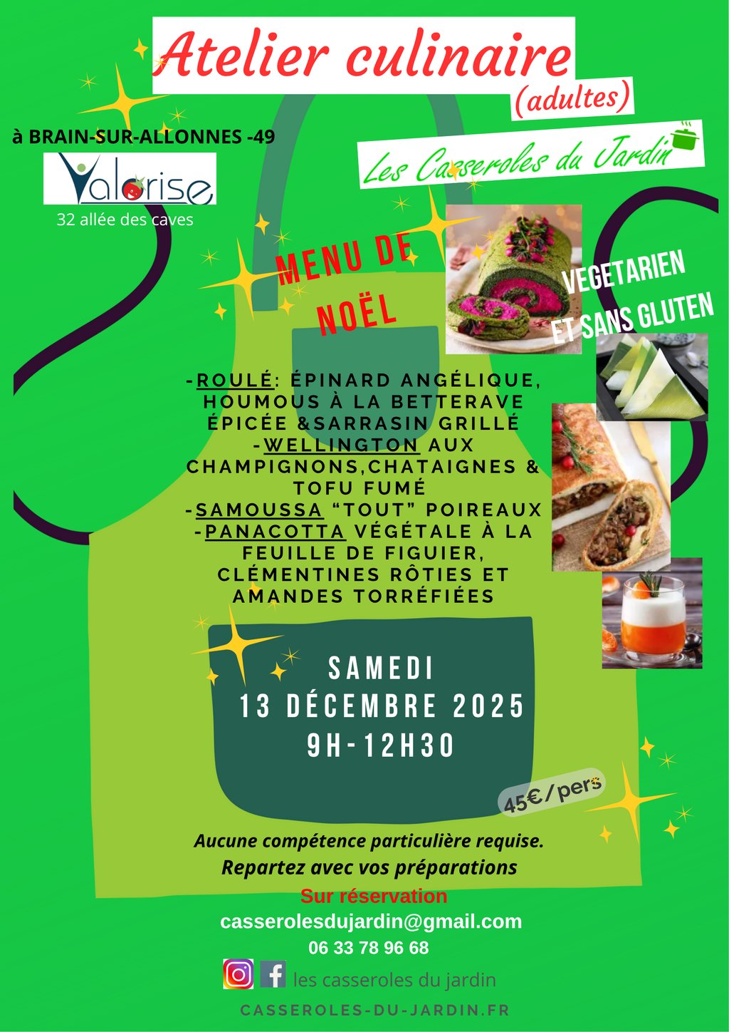 Réservation : casserolesdujardin@gmail.com - 06.33.78.96.68