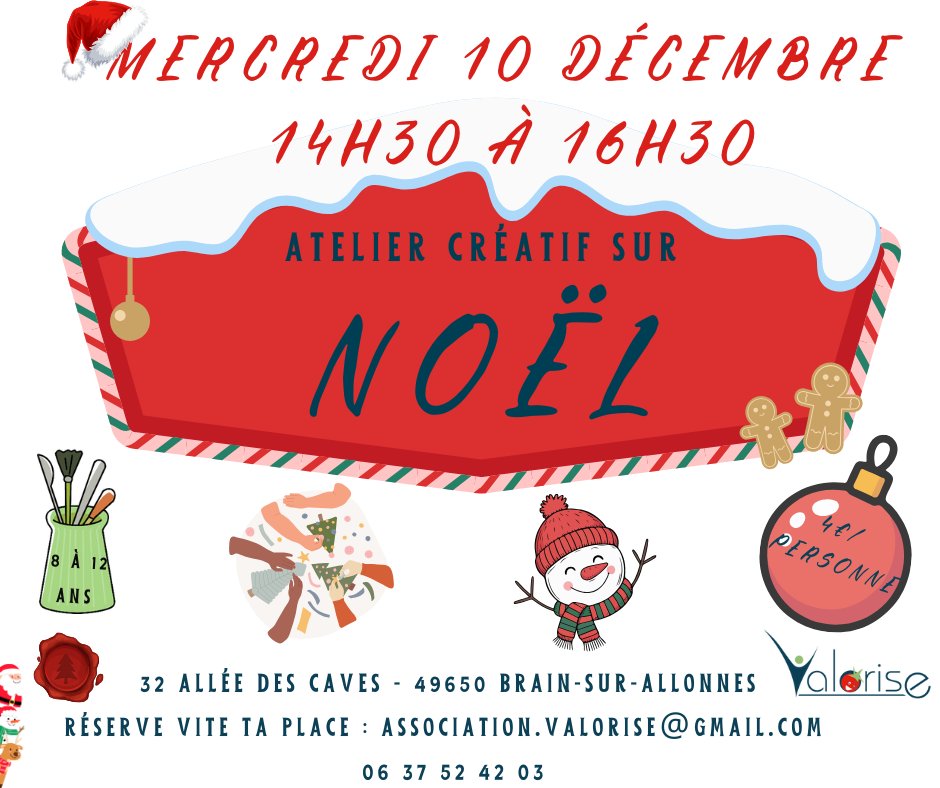 Atelier créatif sur Noël de 14h30 à 16h30