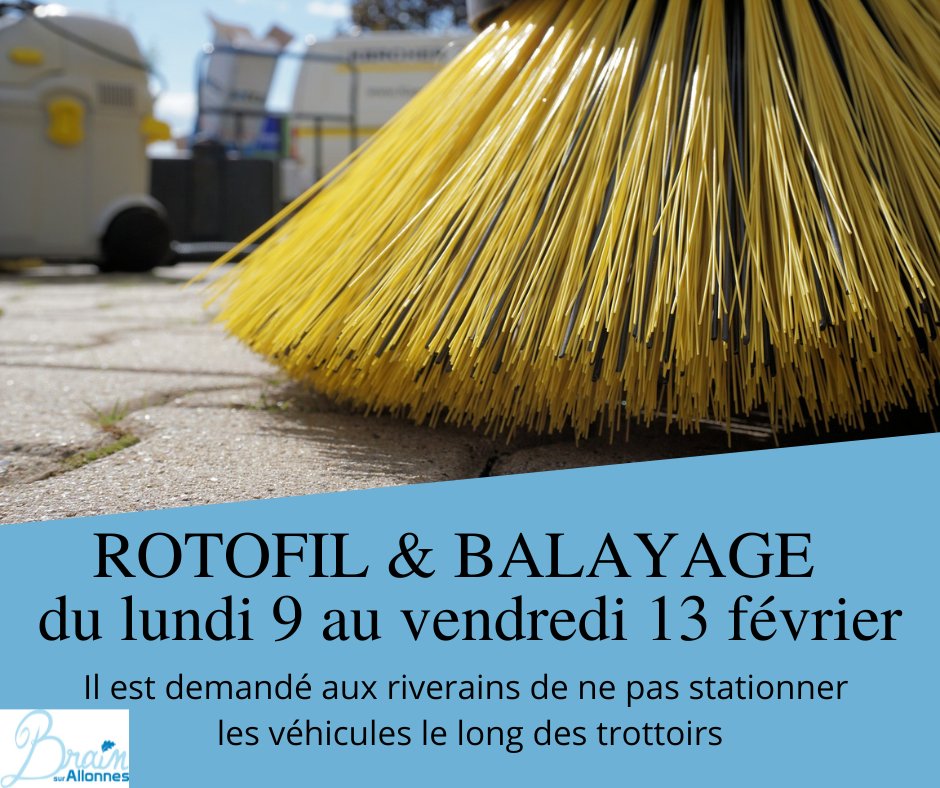 Entretien de la voirie au rotofil et passage de la balayeuse aspiratrice du lundi 09 au vendredi 13 février 2026.