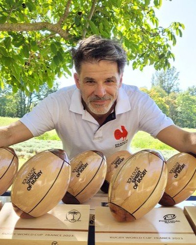 Au printemps 2026, l’esprit “rugby” s’invite aux Essarts, espace arts et cultures de Bram avec Pierre Armengaud, maître artisan en métiers d’art, maître ébéniste et sculpteur, et créateur des célèbres Ballons de Rugby en Bois.