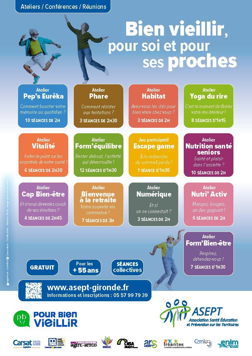 Vous êtes retraité(e) en Gironde ? L’ASEPT Gironde vous invite à participer à des ateliers de prévention santé, gratuits et près de chez vous !