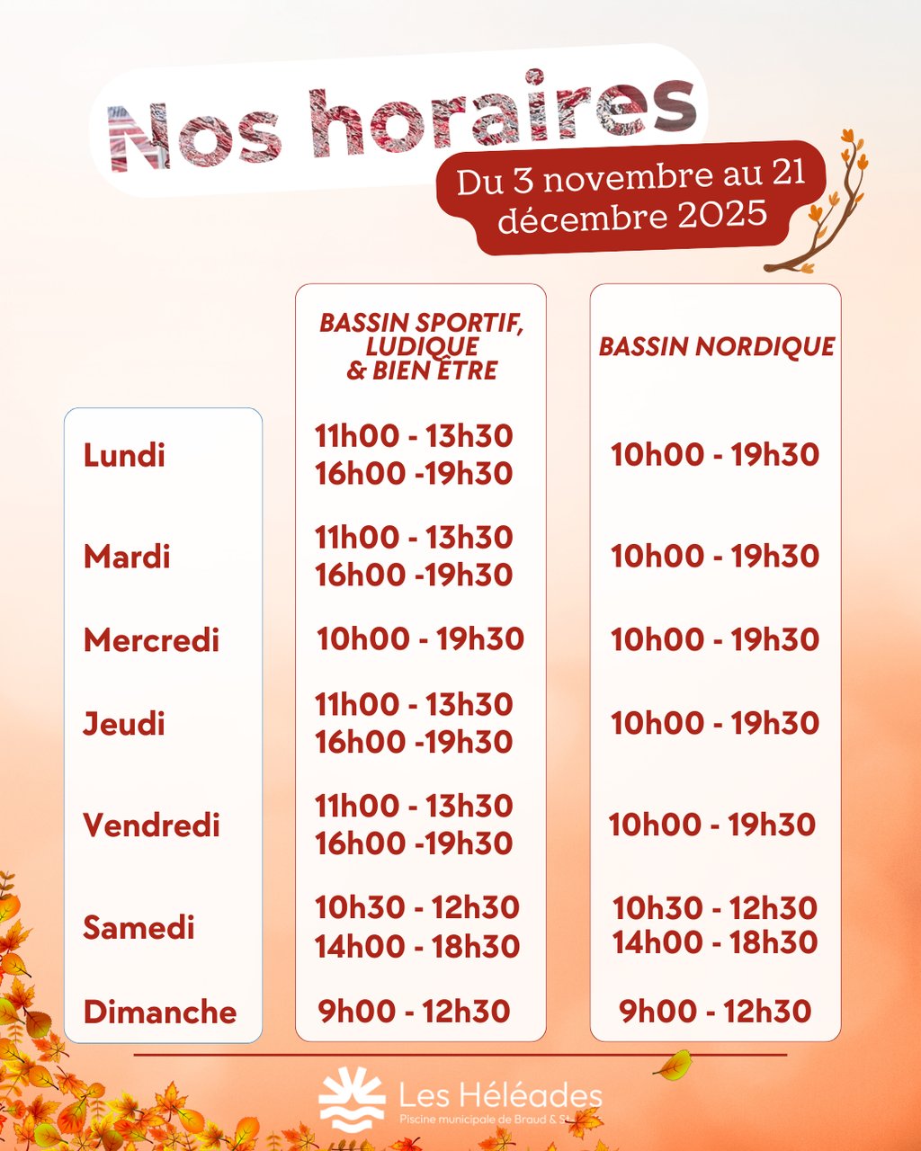 🗓 Horaires d'ouverture du 20 au 31 octobre 2025