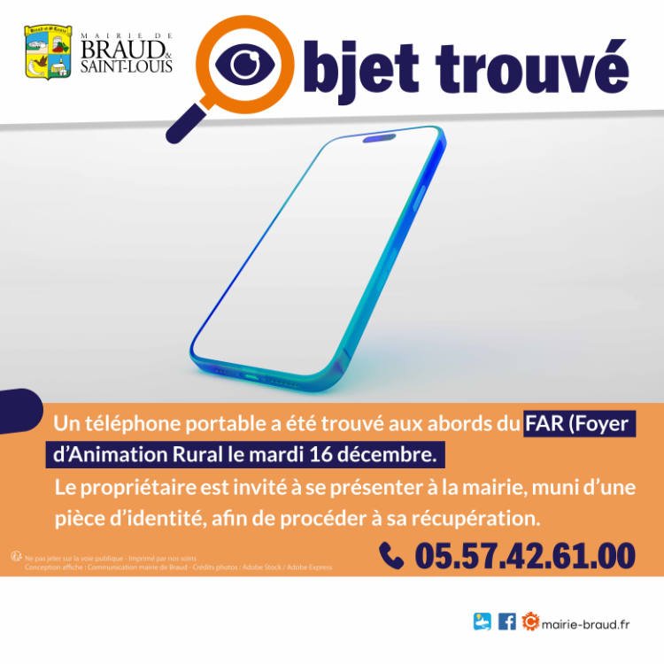 OBJET TROUVÉ MAIRIE DE BRAUD - SMARTPHONE - 16/12/2025