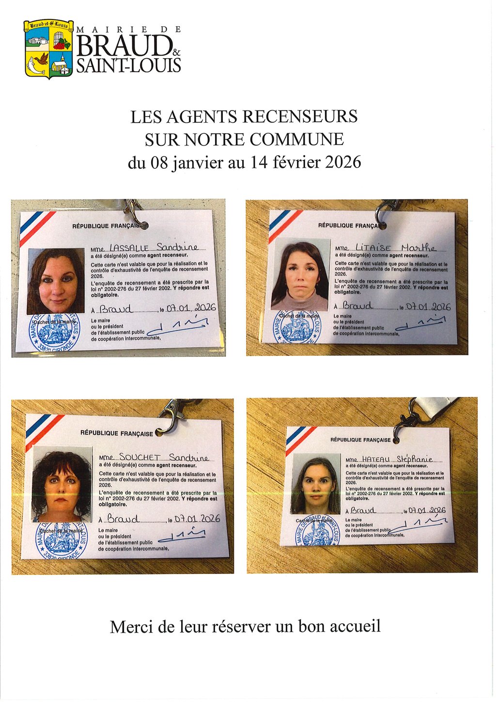 Merci de rĂ©server le meilleur accueil aux agents recenseurs et de participer Ă cette dĂ©marche citoyenne.đÂ