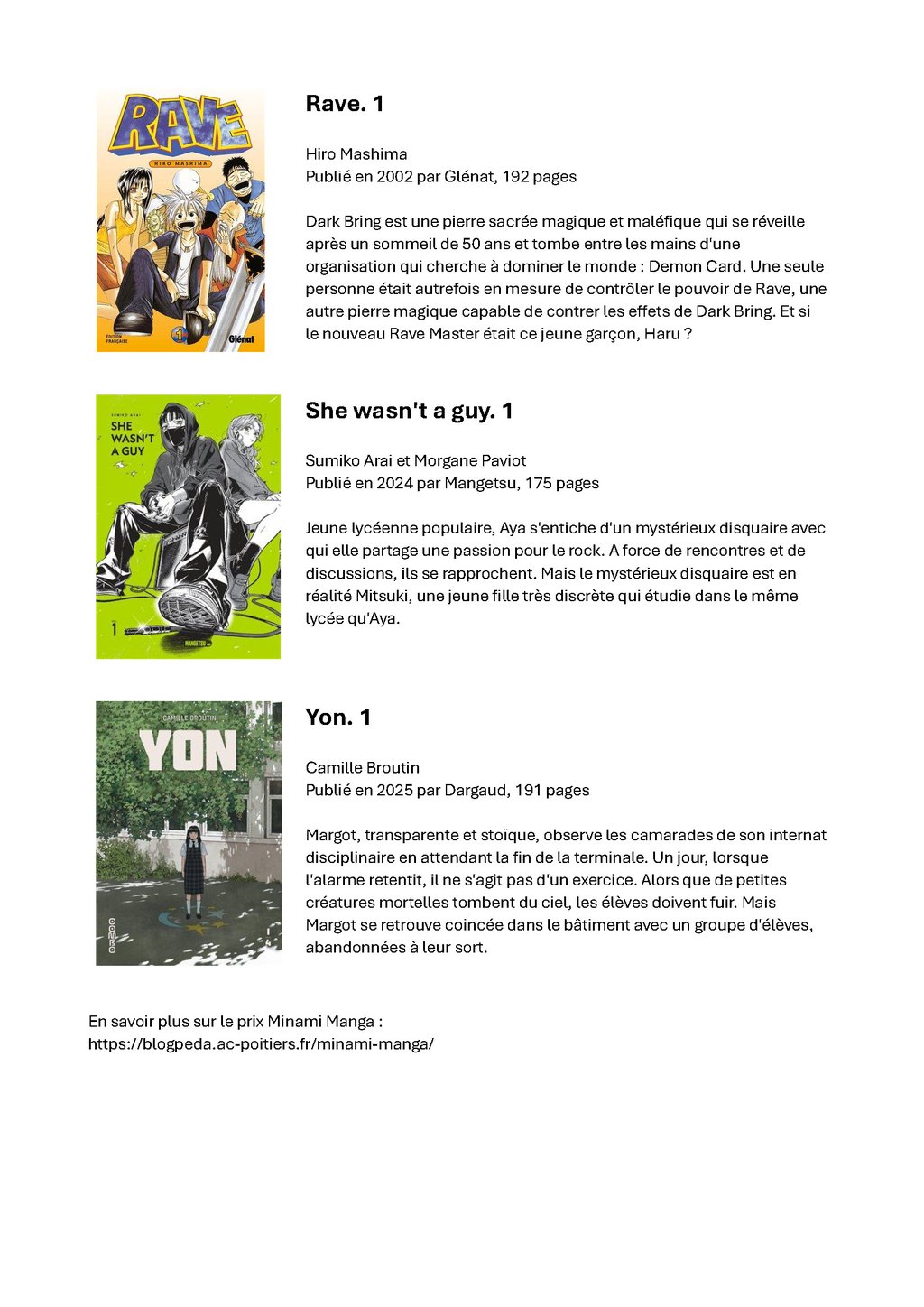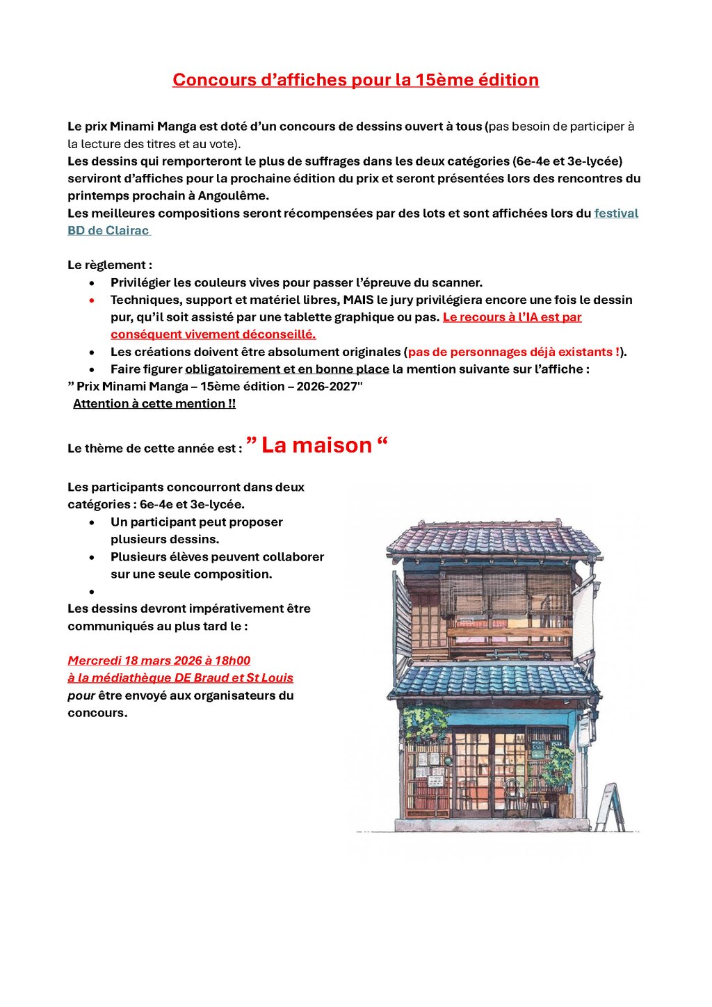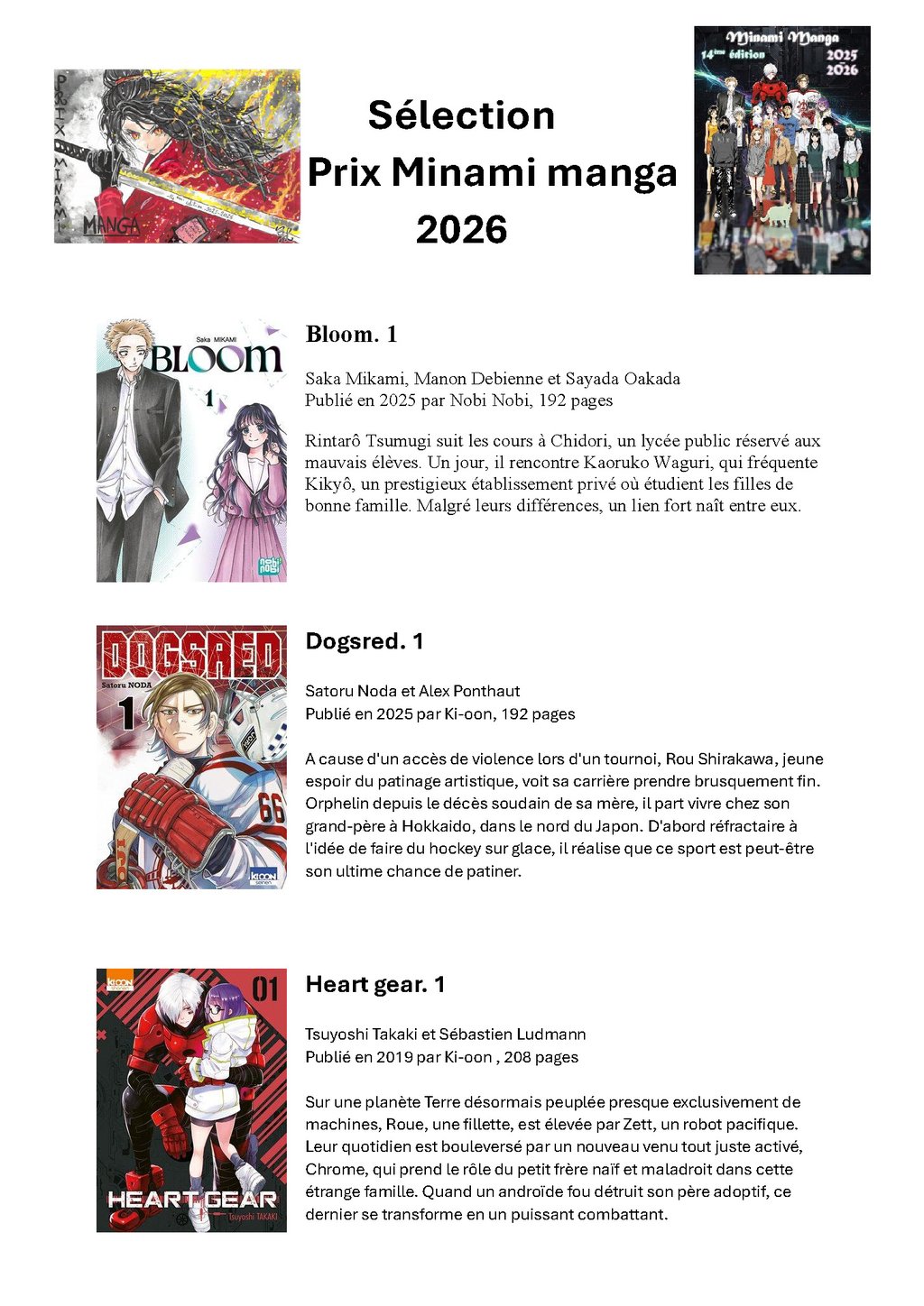 MEDIATHEQUE MUNICIPALE DE BRAUD : PRIX MINAMI MANGA 2026🏆VOTE ET CONCOURS DE DESSIN