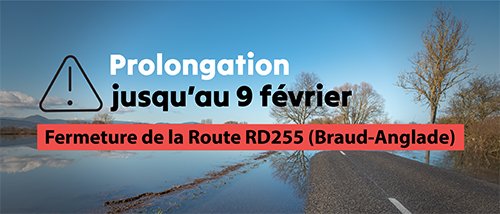 ⚠️ 𝐑𝐨𝐮𝐭𝐞 𝐛𝐚𝐫𝐫𝐞́𝐞 – RD255 – BRAUD-ANGLADE