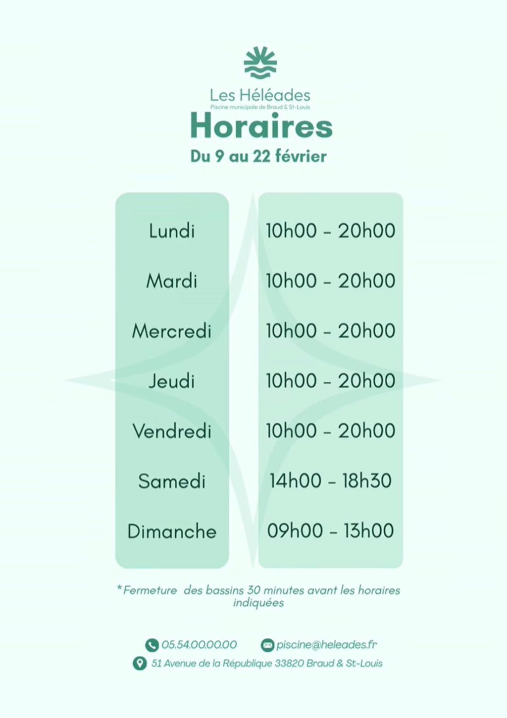 🏊‍♀️ LES HÉLÉADES PISCINE MUNICIPALE DE BRAUD – VACANCES DE FÉVRIER 2026 ❄️
