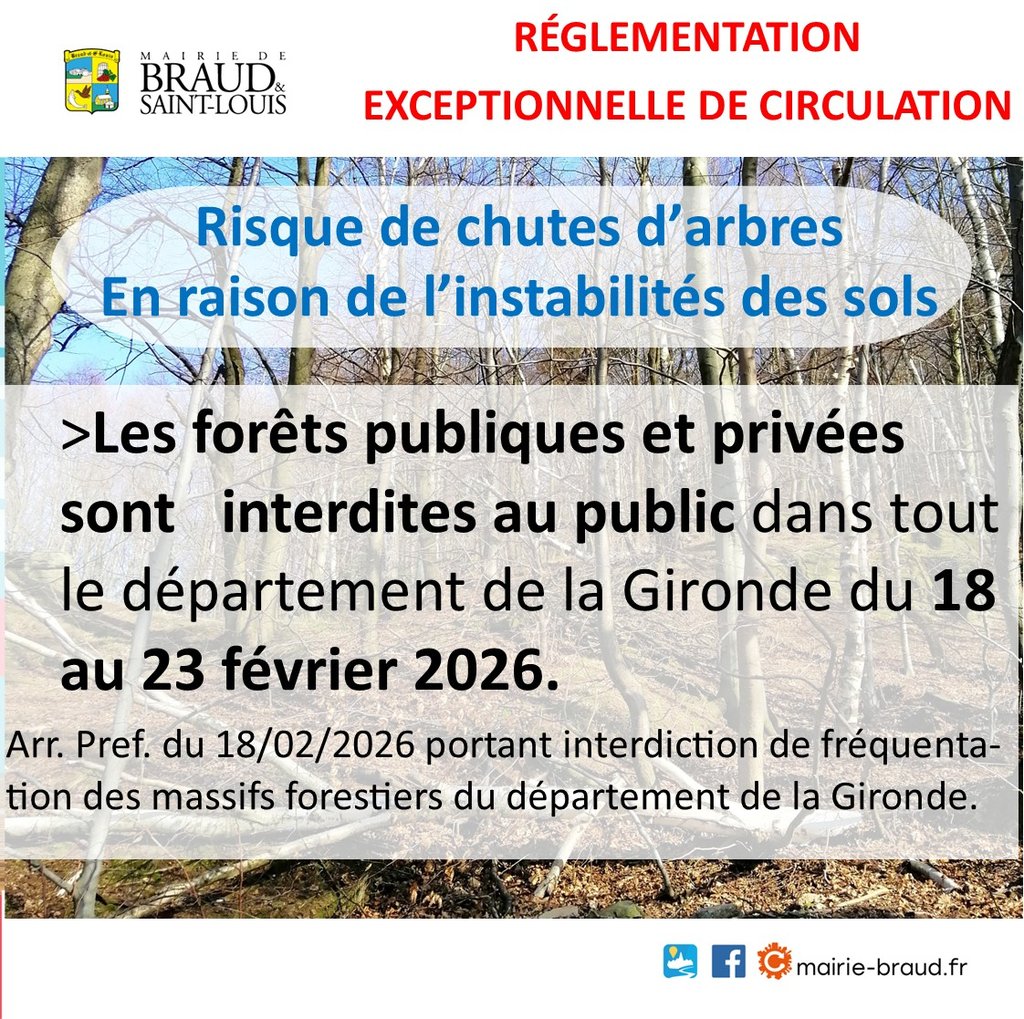 📣Les forêts publiques et privées sont interdites au public dans tout le Département de la Gironde du 18 au 23 février.