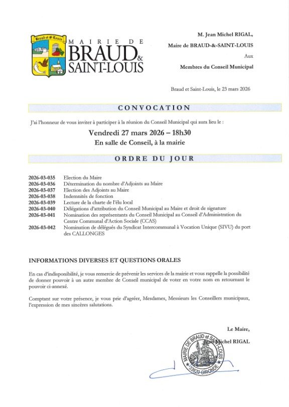 📅vendredi 27 mars 2026 à 18h30, à la mairie de Braud & St-Louis.