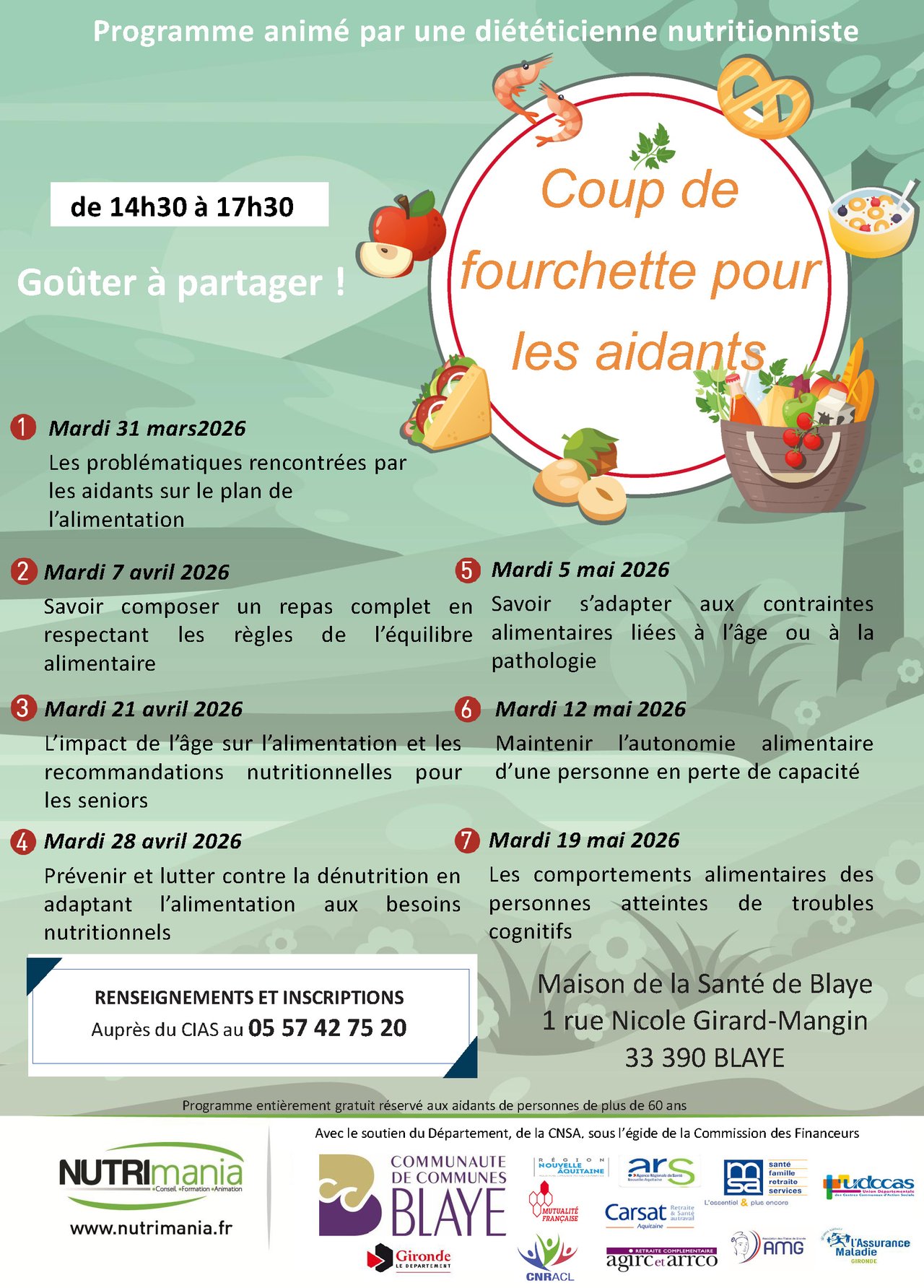 Le programme “Coup de fourchette pour les aidants” est une initiative gratuite organisée par Nutrimania et le Centre intercommunal d’action sociale (CIAS) de la Communauté de communes de Blaye.