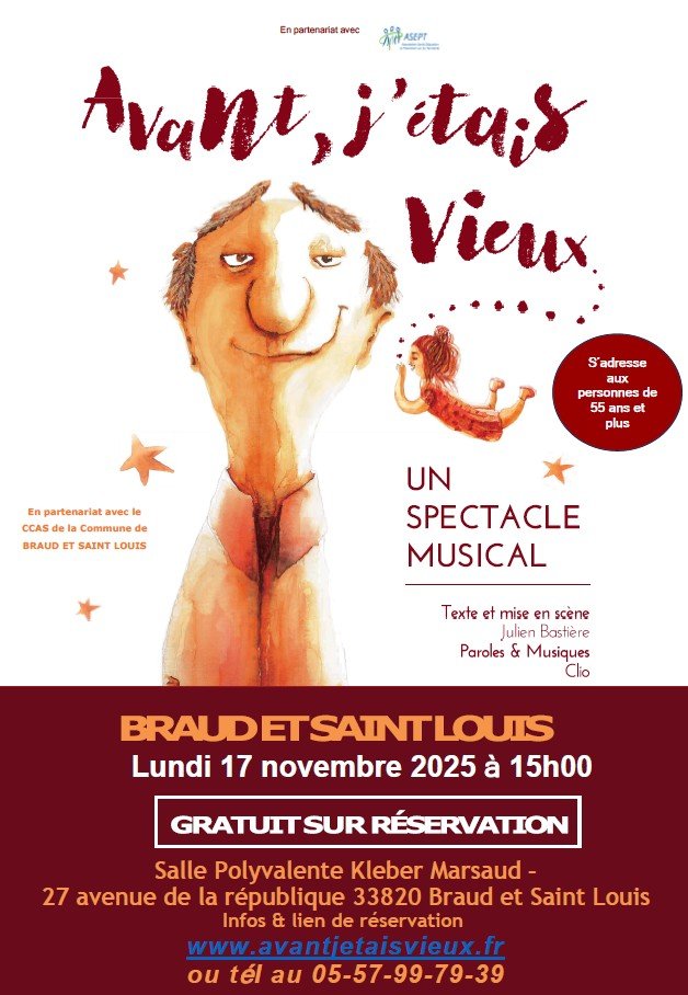 Infos et lien de réservation : www.avantjetaisvieux.fr / 05 57 99 99 79 39