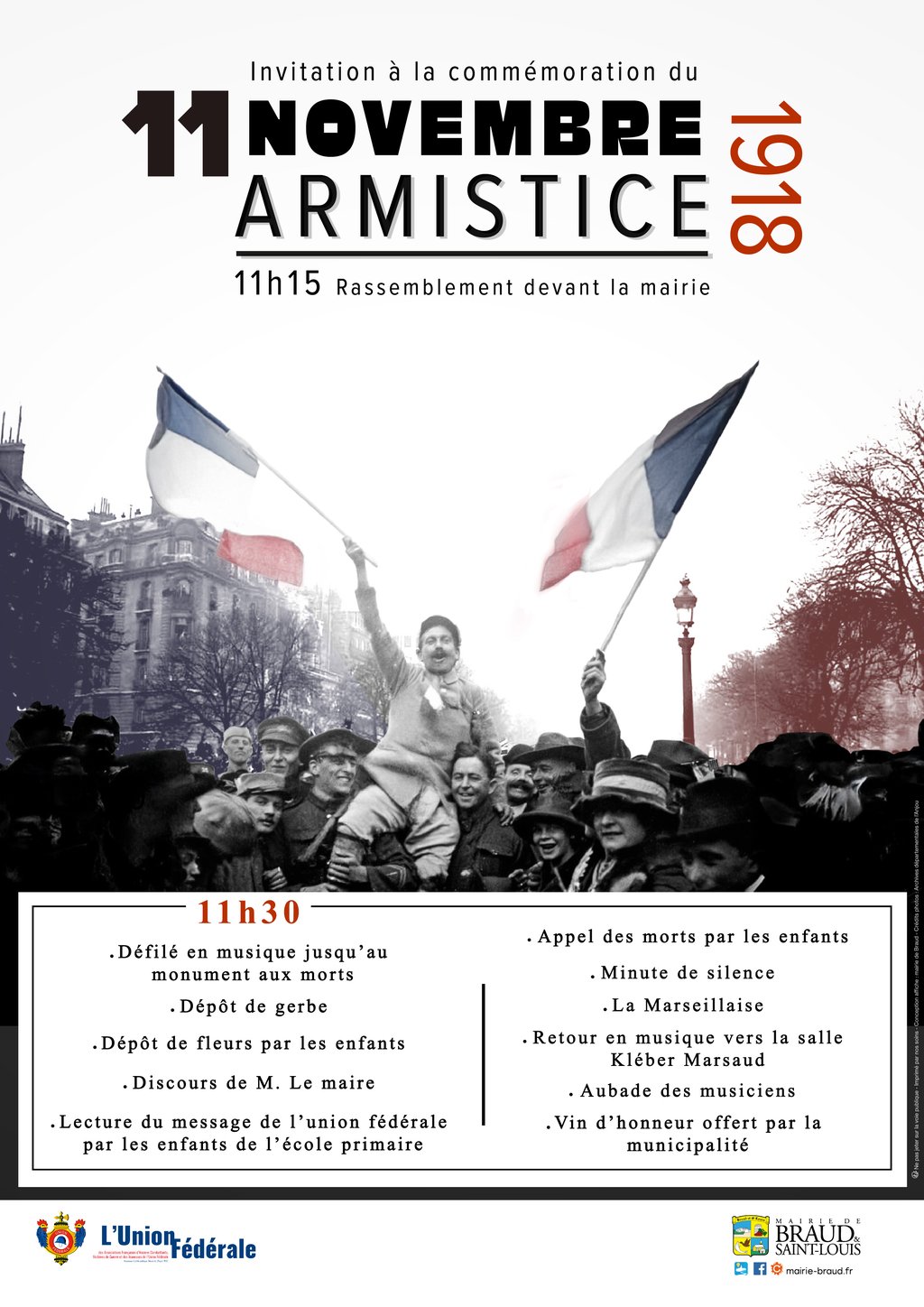 La municipalité de Braud-et-Saint-Louis vous invite à participer à la cérémonie du souvenir, en hommage aux soldats morts pour la France.