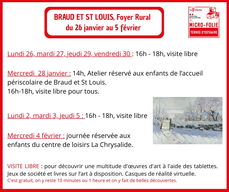 Le Musée Numérique Micro-Folie revient à Braud et St Louis, dans le Foyer Rural (Far), du lundi 26 janvier au jeudi 5 février.
