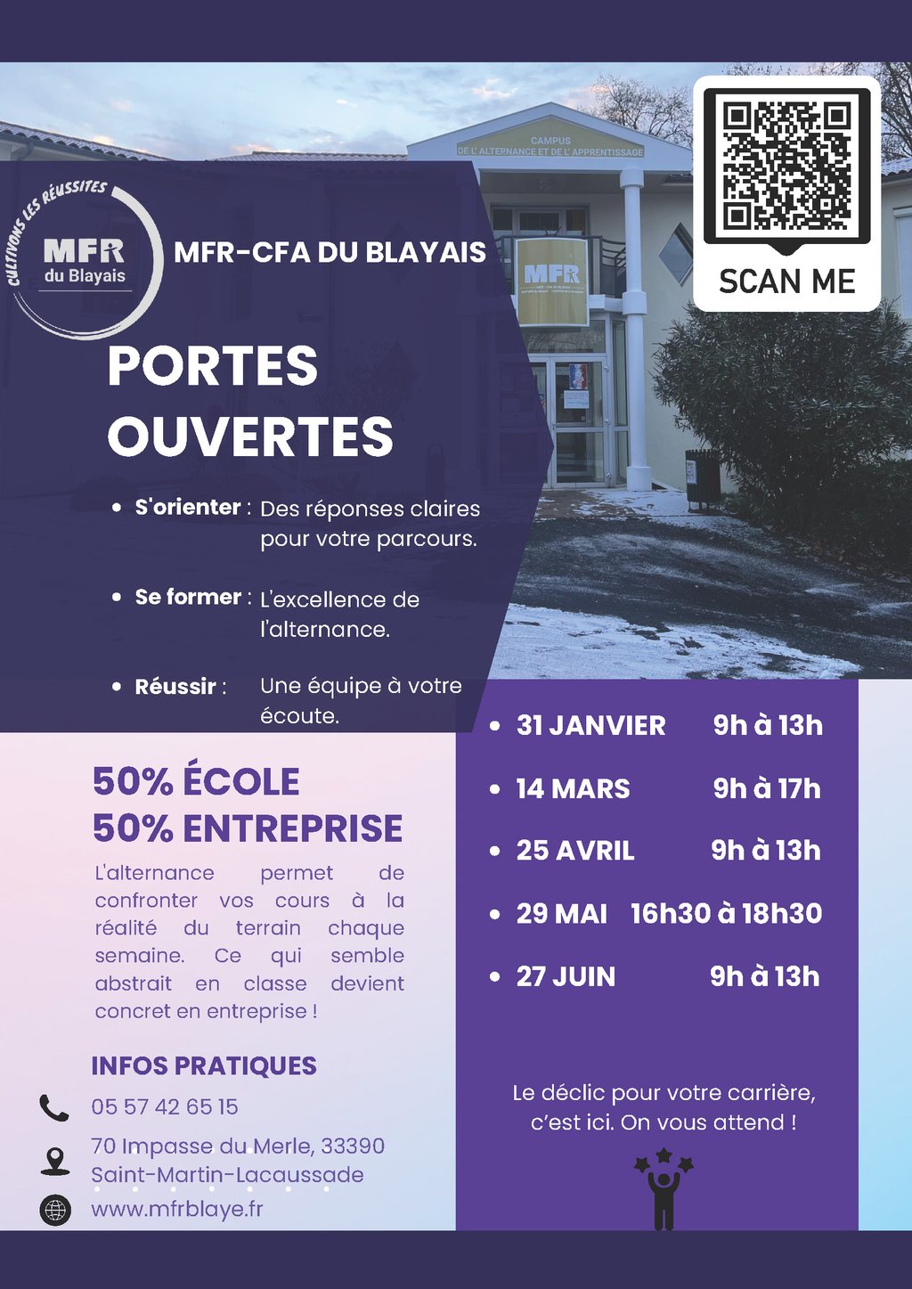 Retrouvez ci-dessous les dates des portes ouvertes de la MFR du Blayais :