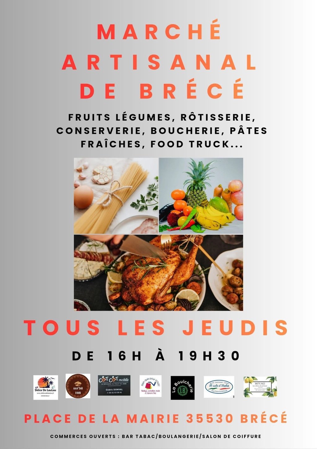 Tous les jeudis après midi de 16h à 19h30 Marché Artisanal sur la place de la mairie de Brécé
