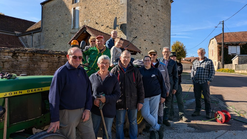 Ce samedi 18 octobre, les conseillers municipaux et quelques habitants du village se sont réunis pour une journée de travaux d’automne. La météo particulièrement ensoleillée s’est prêtée idéalement aux travaux de jardinage et de peinture prévus.